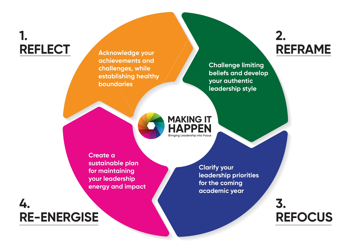 Reflect, Reframe, Refocus, Re-energise.
